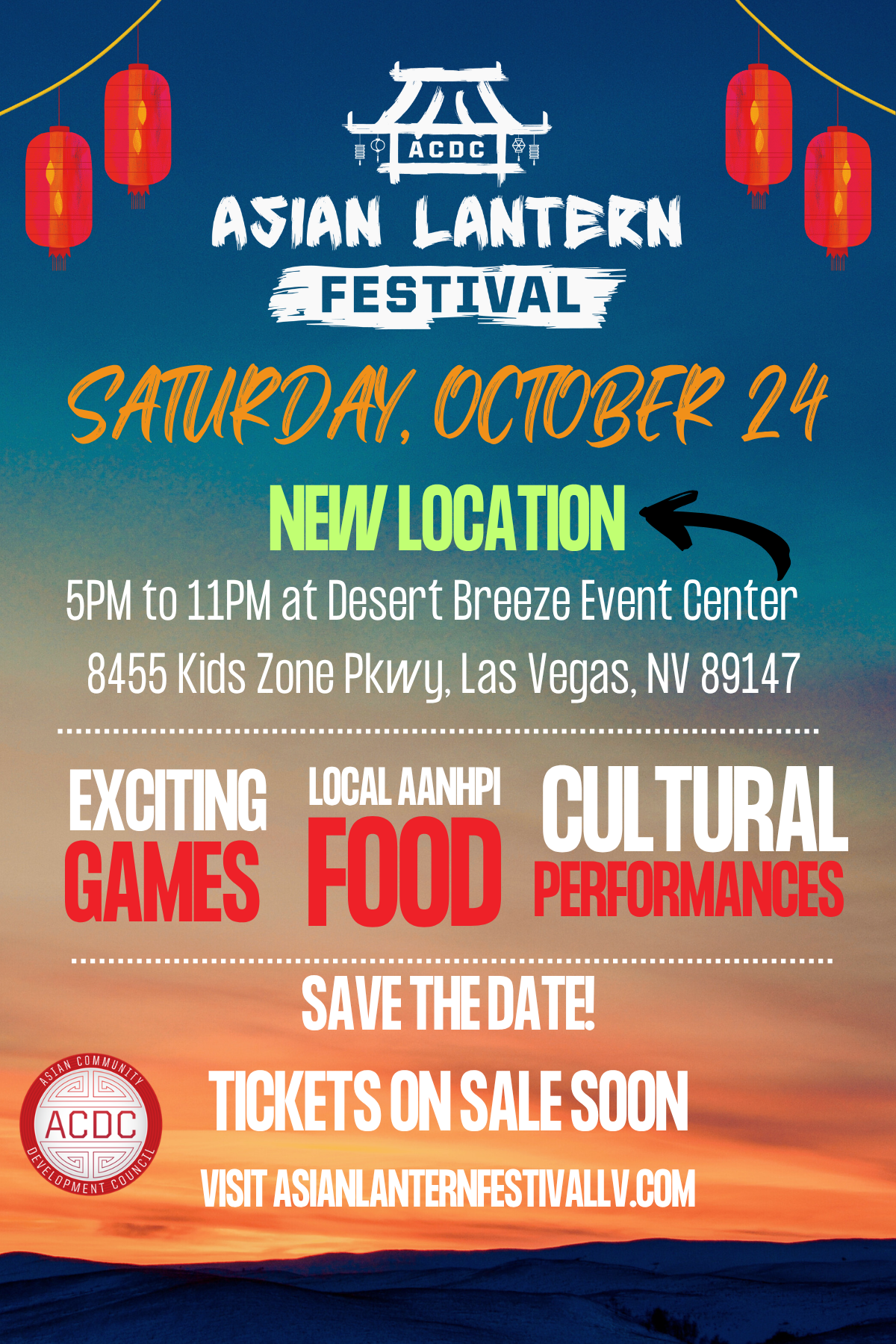 Join us at our new location, the Desert Breeze Event Center, this year for the annual Asian Lantern Festival! This will be another mesmerizing night under the lanterns filled with diverse traditions, tantalizing flavors, Las Vegas vendors, and captivating cultural performances.